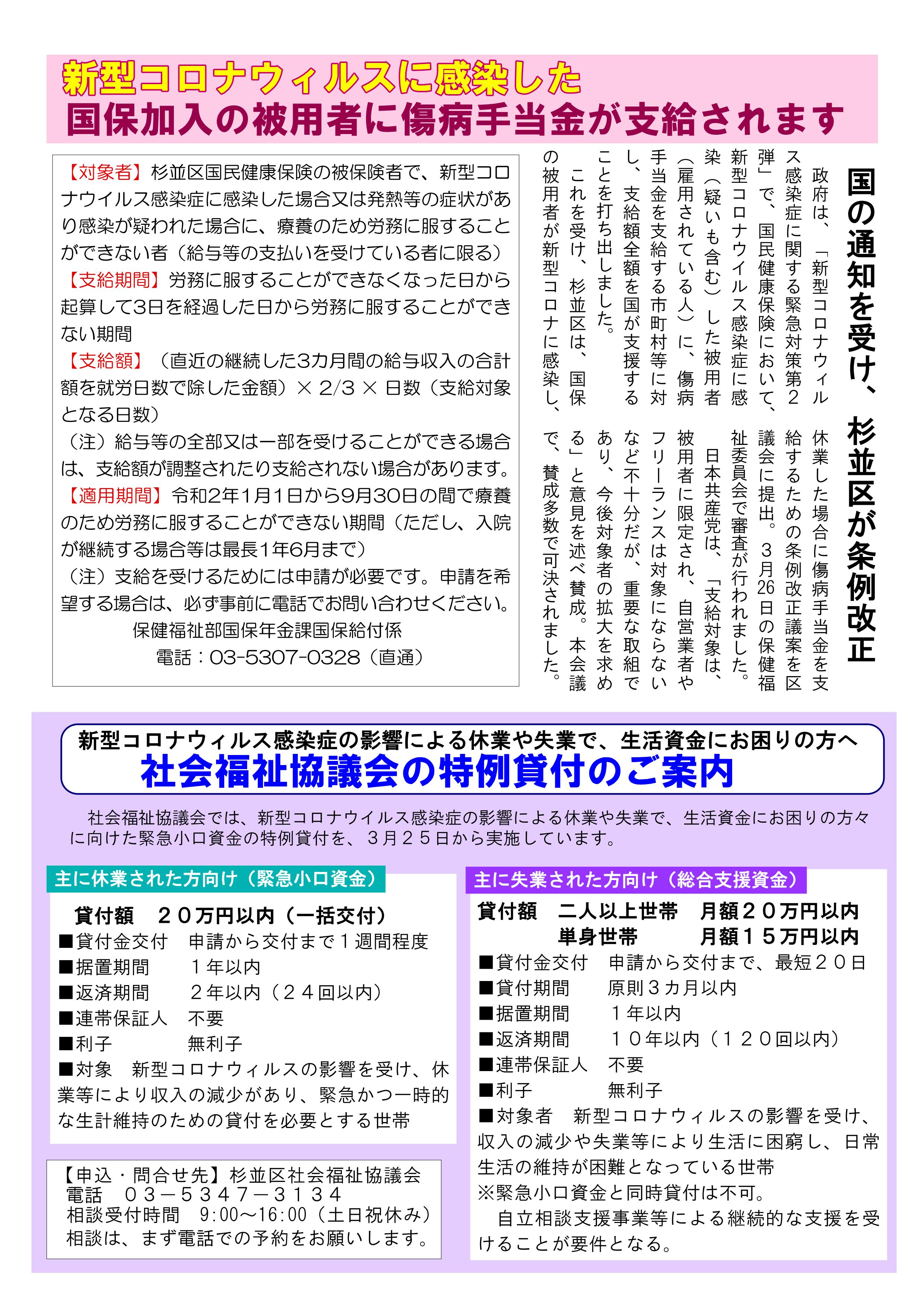 新型コロナウィルス 杉並区に対策強化を緊急要請 新型コロナウィルスに感染した国保加入の被用者に傷病手当が支給されます